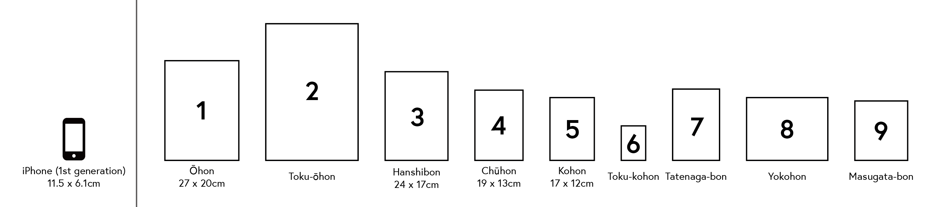 - Yatsuhan-bon (“eighth-sized” books: approx. 12.2 x 8.1cm)